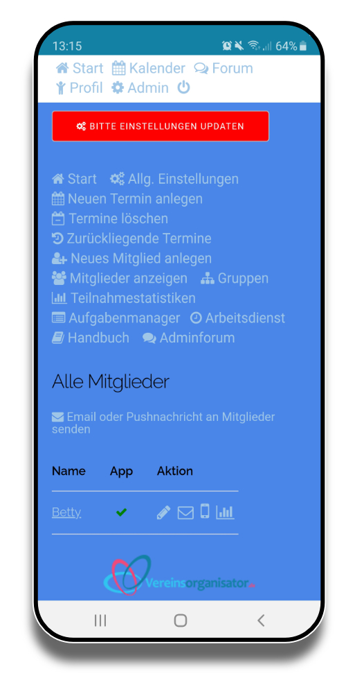 - Einfach Kontaktaufnahme zu allen Mitglieder über die Mitgliederliste