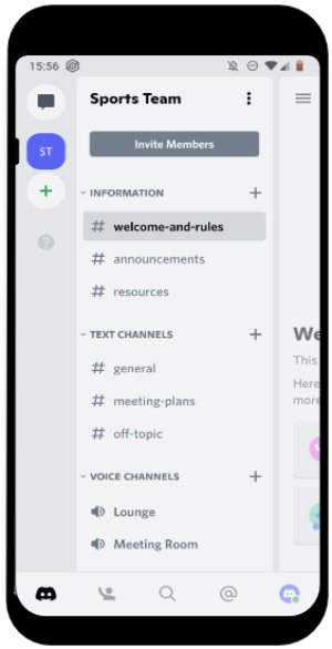 Sobald ihr für euren Verein einen eigenen „Server” erstellt habt, könnt ihr einen oder mehrere Channel einrichten und dann die Mitglieder eures Vereins einladen. In den Channels könnt ihr Nachrichten schreiben und Audio- oder Videotelefonate führen.