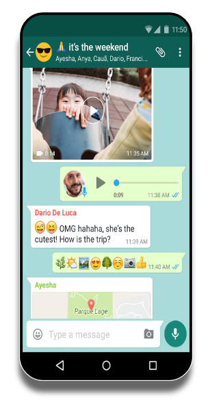 - Versenden von Sprachnachrichten, Bildern, Videos, Dokumenten und Standorten
